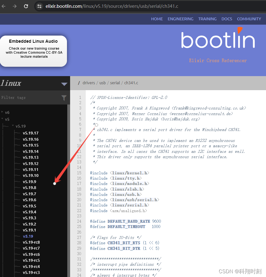 然后去查看ch34x.c的 源代码,