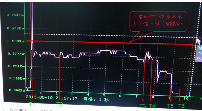 (一)我们先以设备正常使用状态下的心轨的功率曲线对道岔功率曲线进行分析,正常功率曲线如下:
