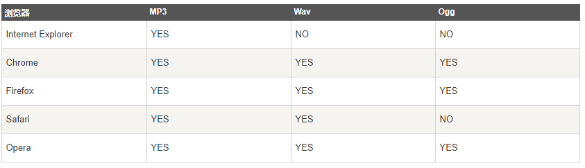 上面这种写法,浏览器会匹配audio标签中的source,如果支持就播放,如果不支持往下匹配,直到没有匹配的格式,就提示文本
