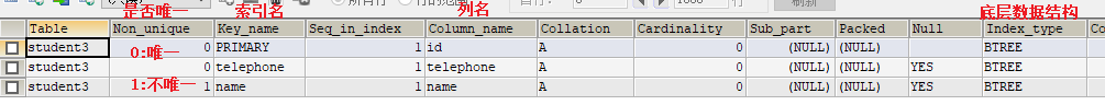 【查看student3表的索引信息】