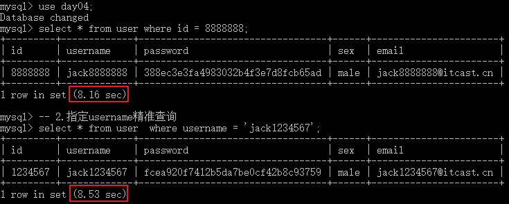 select * from user where id = 8888888;