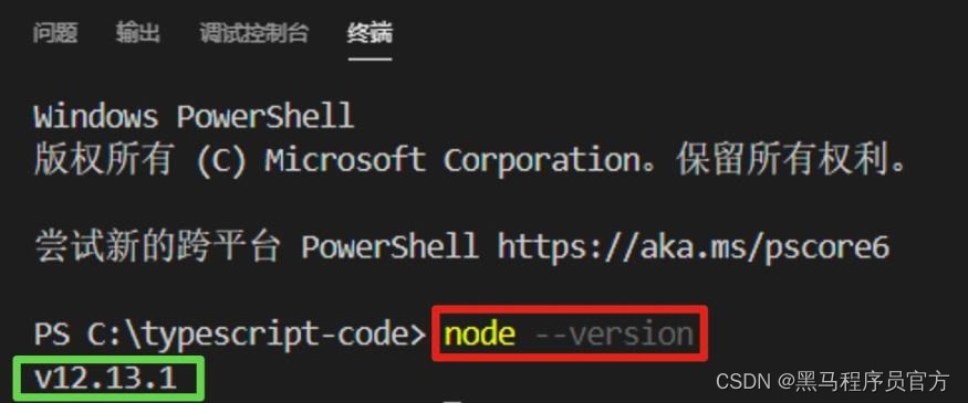 2. 在终端(黑窗口)中输入:node --version,验证是否安装成功(注意:需要重启VSCode)。