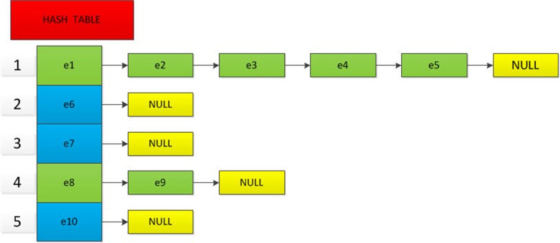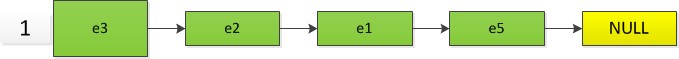 以哈希存储模型1为例,当删除e4后,其链表的调整顺序为: