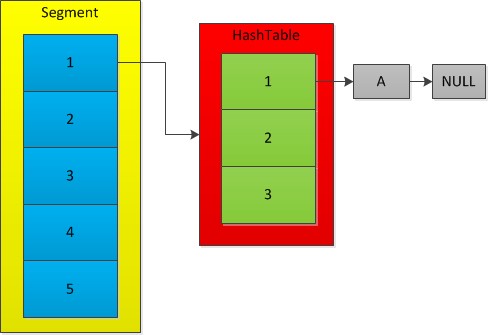 实现Map接口的put,get等方法,首先需要确定元素在segments中的索引,然后根据key值与哈希值确定segments[index]对象中table(哈希表)的索引。