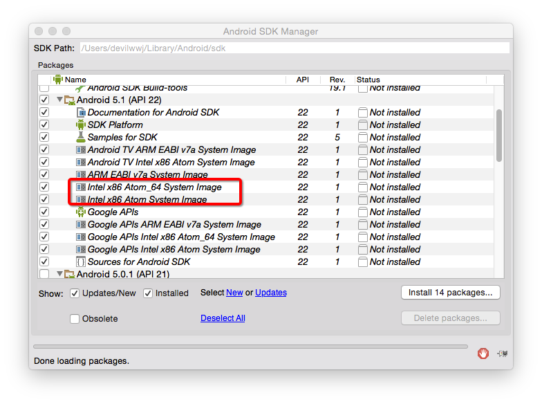 我们也可以使用Android SDK Manager安装硬件加速器来提升Android创建的自带的虚拟机运行速度,但这里还是推荐使用Genymotion,速度和开发效率也是杠杠的。