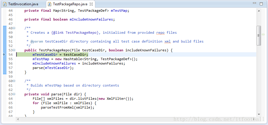 如上,new一个TestPackageRepo对象,参数为File对象(指向testcases目录)和boolean值。进入TestPackageRepo对象的构造方法,看其如何获得xml文件的信息的。