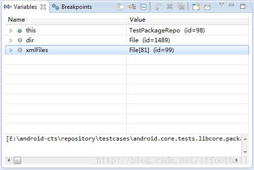 parse方法中,首先获得testcases目录中所有的xml文件。查看Variables一栏中xmlFiles对象。有80个元素,说明testcases目录下有81个xml文件。