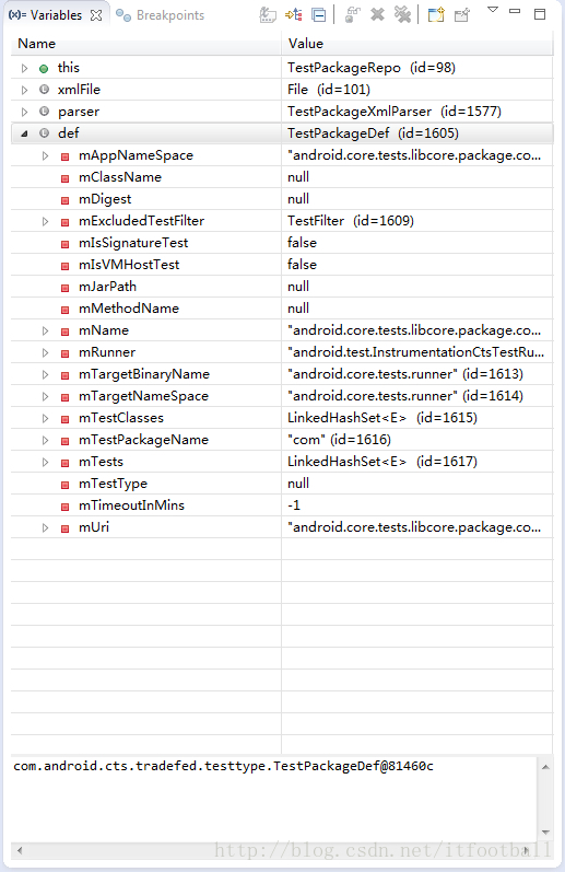 该方法执行完成后,xml文件里的信息都读到了TestPackageDef对象中了。