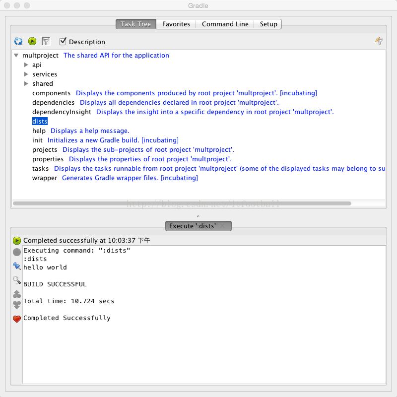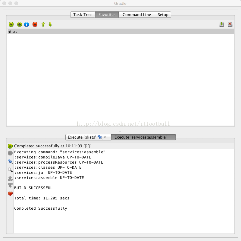 上面的爱心是收藏的意思。如果你点击了,你会在上半部分的面板中的Favorites找到改任务。一般执行的频率比较多的话,可以收藏一下。