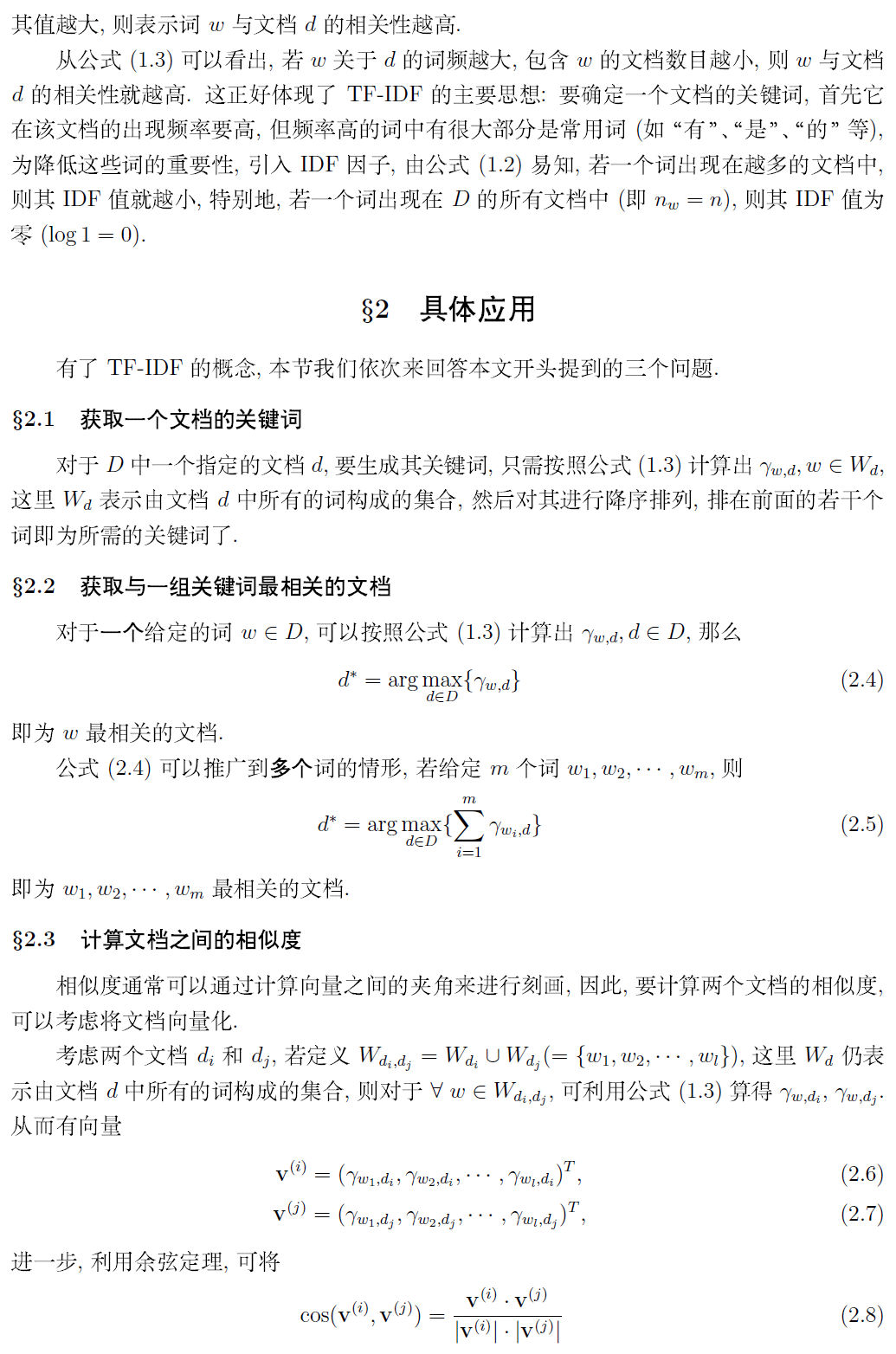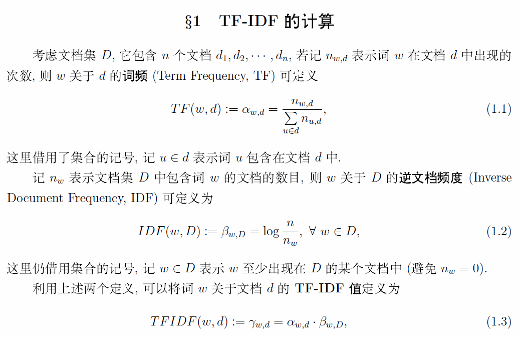 回答上述三个问题的关键是:对于一个给定的词和一个给定的文档,定义一个可以用来衡量该词对该文档相关性(或重要性)的指标。那么,如何定义这样的一个指标呢? 本文将简要介绍词频-逆文档频度(Term Frequency - Inverse Document Frequency,TF-IDF)技术,它是一种用于资讯检索与文本挖掘的常用加权技术,可以用来评估一个词对于一个文档集或语料库中某个文档的重要程度。