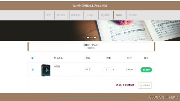 【毕业论文】协同过滤技术的网上书城JAVA-SSM 本次开发一套基于协同过滤技术的网上书城有管理员和用户两个角色。管理员功能有个人中心,用户管理,图书分类管理,图书信息管理,订单信息管理,系统管理。用户可以注册登录,查看和收藏图书信息,对图书进行购买下单等操作。