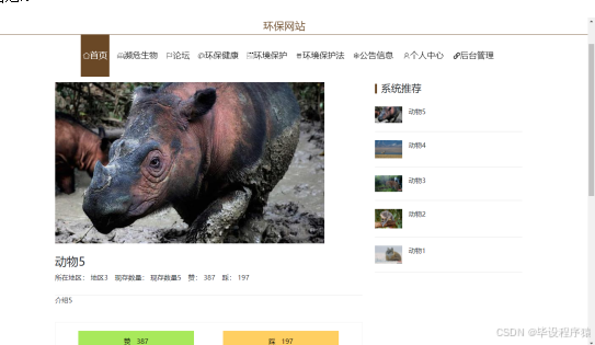 【毕业论文】环境环保健康宣传管理系统JAVA-springboot 后台采用Java语言的Spring Boot框架,前台采用VUE框架和layui样式,环保网站实现页面基本用HTML文件写作方式。实现了管理员功能有个人中心,管理员管理,濒危生物管理,地区管理,环保健康类型管理,保护法类型管理,公告类型管理,论坛管理,环保健康管理,环境保护管理,环境保护法管理,公告信息管理,轮播图管理。用户可以注册登录,修改个人信息,查看管理员发布的各种信息还可以留言,可以对濒危生物收藏,环保健康收藏,环境保护收藏等操作。环保网站的开发根据操作人员需要设计的界面简洁美观,在功能模块布局上跟