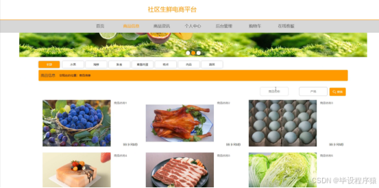【毕业论文】社区生鲜电商平台JAVA-SSM 功能有管理员和用户两个角色。管理员功能有个人中心,用户管理,员工信息管理,商品分类管理,商品信息管理,订单评价管理,系统管理,订单管理等。用户功能有个人中心,订单评价管理,我的收藏管理,订单管理等。