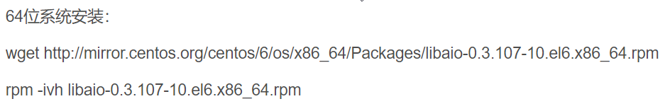 直接访问http://mirror.centos.org/centos/6/os/x86_64/Packages/libaio-0.3.107-10.el6.x86_64.rpm下载libaio文件包。