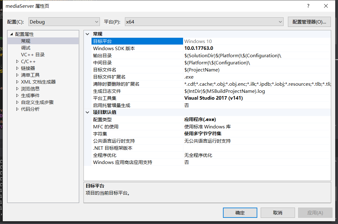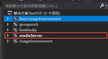 新建下面5个解决方案mediaServer为控制台应用程序,其他全都为lib