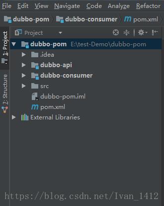 一、先创建一个maven项目 dubbo-pom,里面包含两个module (dubbo-api)和(dubbo-consumer)