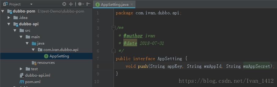 还写了一个AppSettingImp 实现类,用来调用消费者中的AppSetting接口 push()方法: