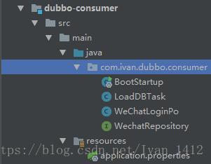 2、在dubbo-cunsumer中新建po类、WechatRepository JPA接口类、springboot启动类、LoadDBTask定时推送类: