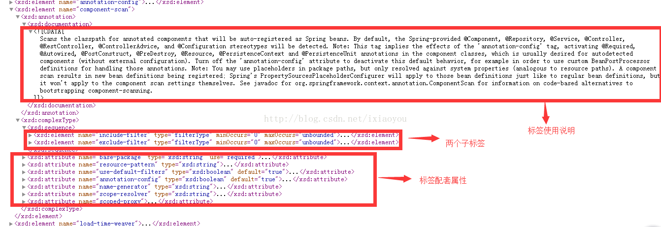 context:component-scan必须要配置base-package,有时候需要配置use-default-filters,其他的不一般都不配置采用默认