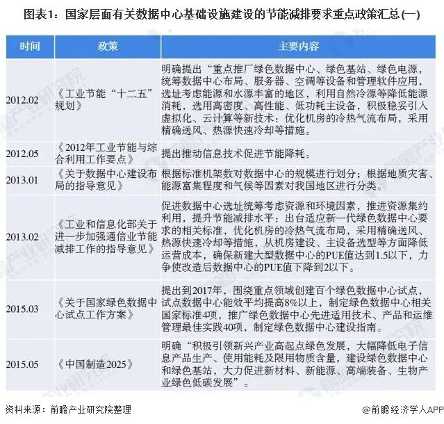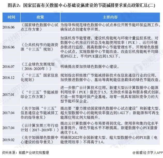 但是,随着数据中心建设项目的不断增加,国家也逐渐意识到数据中心建设对环境与资源造成影响的问题。因此,国家在对数据中心建设政策上逐渐转向鼓励建设节能减排的数据中心,对数据中心能耗和环保提出了更高的要求。
