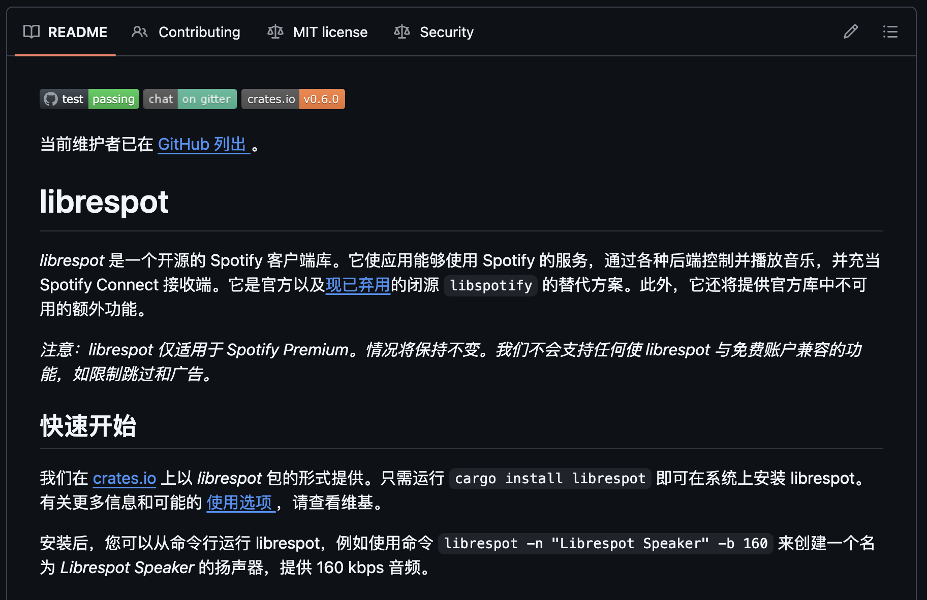 Librespot 是一个开源的Spotify客户端库,由librespot-org组织维护。该项目用Rust语言编写,允许应用程序使用Spotify的服务来控制音乐播放,并作为Spotify Connect接收器。它是官方已弃用的闭源libspotify库的替代方案,并提供官方库不具备的额外功能。