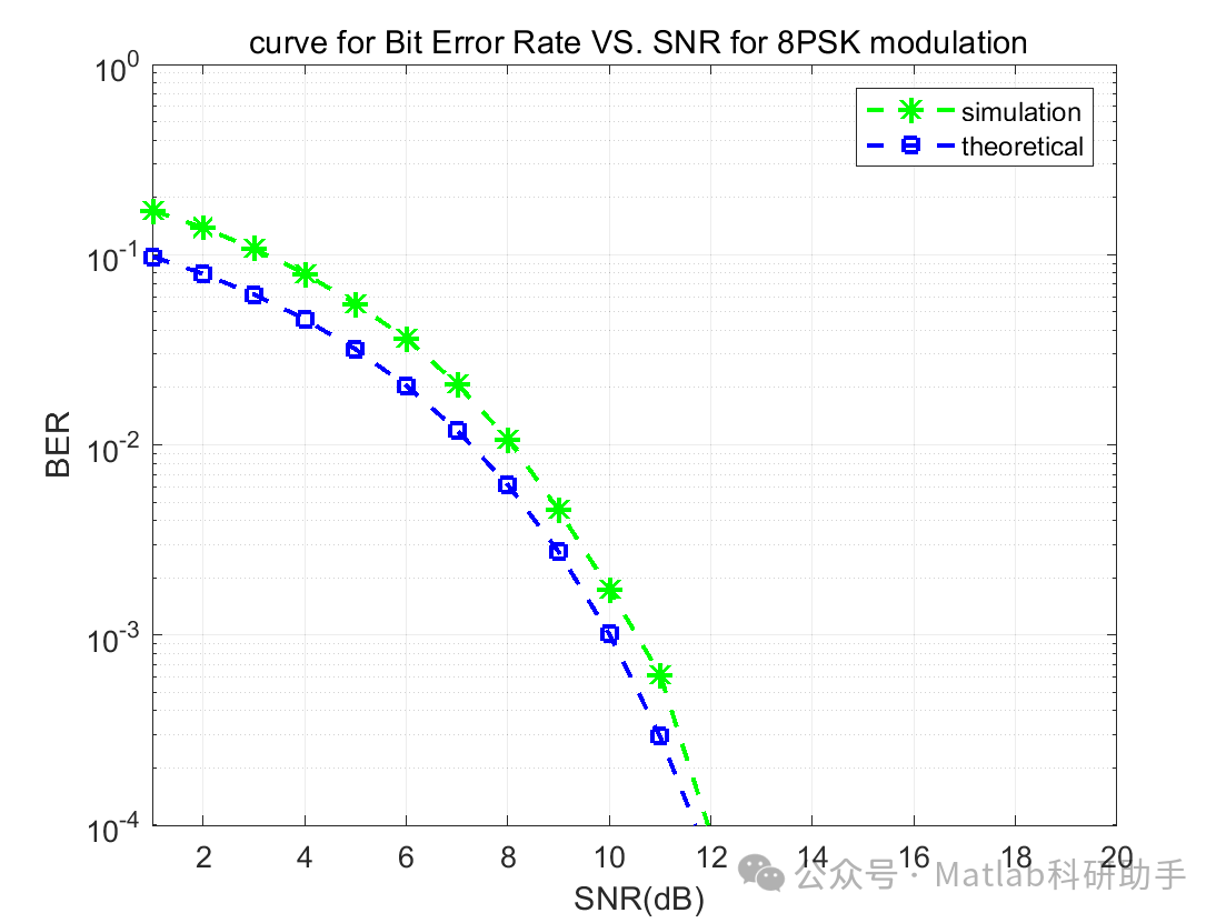 8PSK的误码率性能相对复杂,通常通过符号误码率(Symbol Error Rate,SER)来描述,然后转换为比特误码率(BER)。
