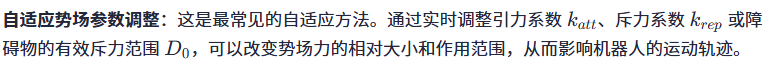:引入自适应机制可能会增加算法的计算量,尤其是在处理大量障碍物或复杂的环境模型时。