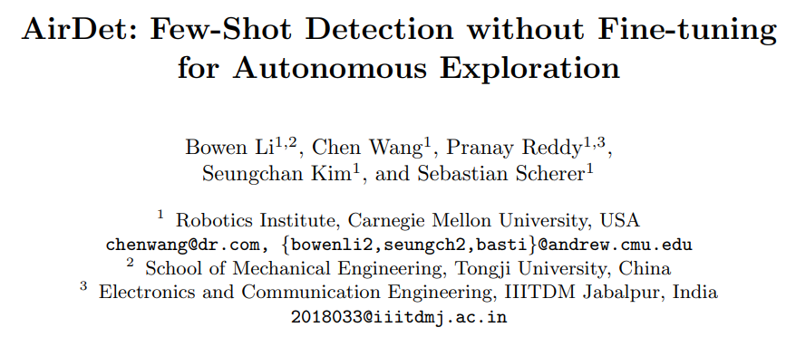 本文提出在机器人自主探索任务中可行的,无需微调的小样本检测模型,AirDet。