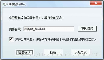 确认同步目录:同步用户如果在线就会弹出以上对话框,选择本地电脑同步目录的路径后,点击[签名确认]。好了,现在可以进行同步了。试一试,到同步目录下复制一个文件,做出一些修改然后保存,会发生什么呢?是不是其他同步电脑目录下的文件也发生同一个动作,就像鹦鹉学舌,亦步亦趋。恭喜你!端端(Clouduolc)将忠实地为您提供服务。