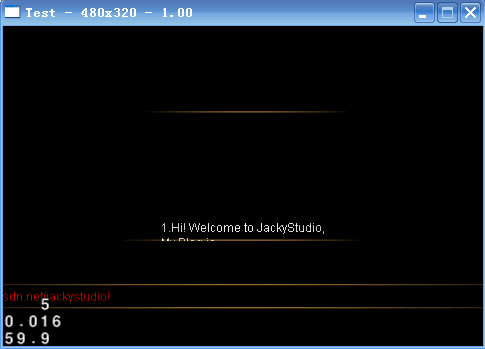 - text2=CCLabelTTF::create("Hi! Welcome to JackyStudio,My Blog is blog.csdn.net/jackystudio!","Arial",12);