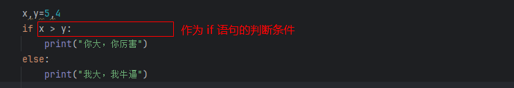 Python的比较运算符主要有以下六种:我们假设x=5,y=3