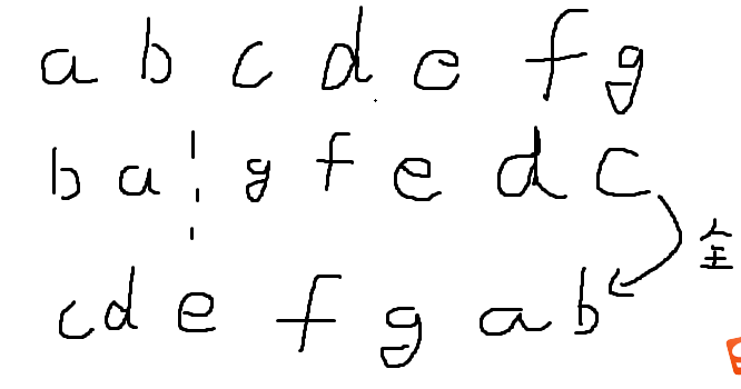 在本题中我们还是利用整体-局部翻转的方法来实现左旋转字符串的操作,通过简单的模拟我们不难得出:我们可以先翻转前k个字符串,再翻转剩下的字符,最后整体翻转即可实现左旋转的效果。
