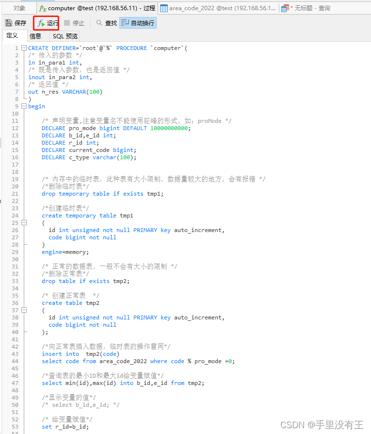 动力十足,开始啦。下面的存储过程(基于mysql8),可以作为一个标准的sql模式了,见到就不要错过呦!!!!废话太多了,上sql语句。