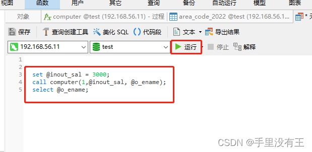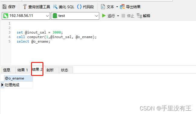 界面和sql语句形式执行存储过程全部演示完毕,多写几次,熟练就好了。