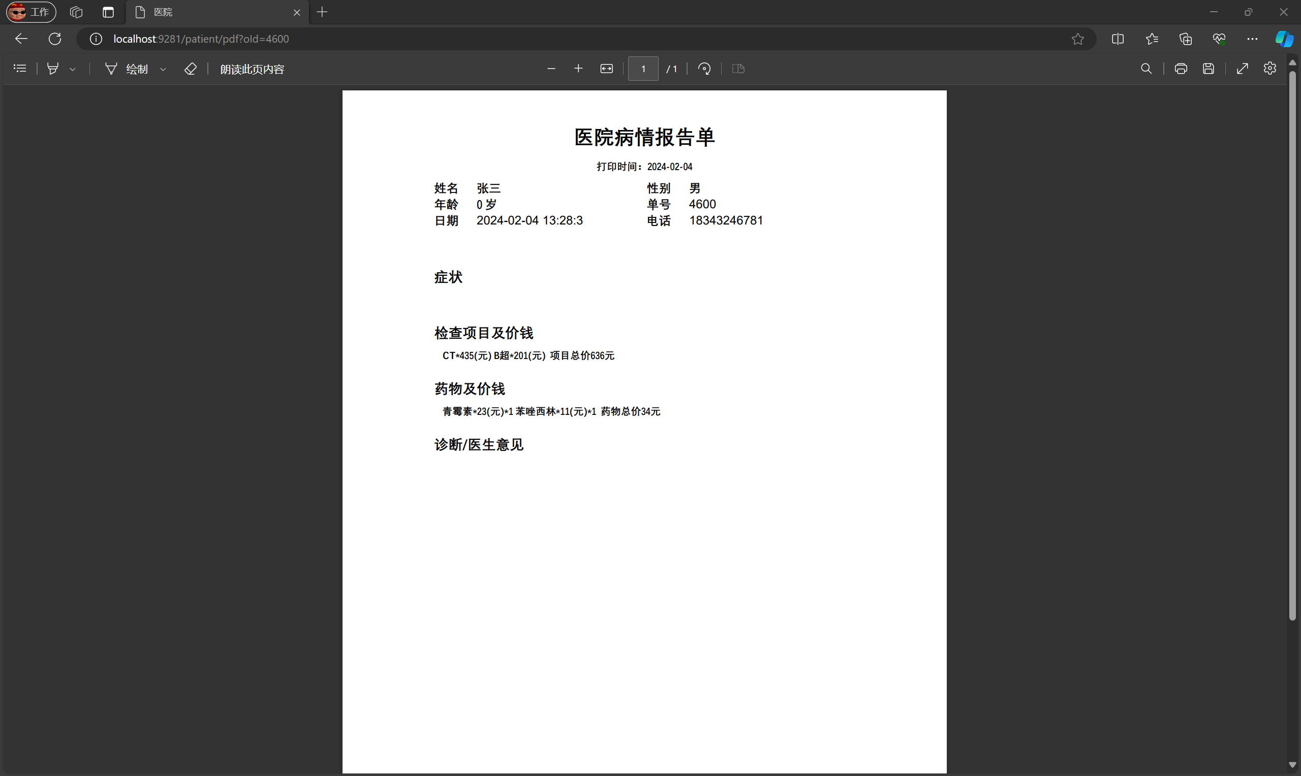 1) 系统登录页面:分为三个角色登录患者、医生、管理员。同时支持患者注册账号。医生账号由管理员进行创建。 2) 管理员首页:可以看到今天的预约挂号总人数与今天住院总人数。 3) 医生管理:可以分页模糊查询医生信息。支持编辑与删除功能。同时新增医生时,需绑定所在科室,方便后续的排版。 4) 患者管理:可以分页模糊查询患者信息。支持删除功能。 5) 挂号管理:后台管理员可以查看到所有挂号的信息,以及检查项所开的药品与价格明细。 6) 药物管理:管理药物信息支持新增、编辑、删除功能。同时来维护药物价格。 7) 检查项管理:管理检查项信息支持新增、编辑、删除功能。同时来维护检查项价格。 8) 病床管理:可以查看患者与医生编号以及入住时间,同时可查看病床状态。支持新增、编辑、删除功能。 9) 排版信息管理:可以按照每个科室来给医生分配排版日期。 10) 预约挂号:患者可以选择科室与日期来进行挂号。 11) 我的挂号:可以看到历史挂号信息。支持点击缴费。缴费后支持查看医院病情报告单。 12) 今日挂号列表:医生可以看到自己科室的挂号信息。点击处理可以维护所开的药品以及检查项。 13) 历史挂号列表:医生可查询历史挂号的信息。可以查看缴费状态与挂号状态。 14) 住院申请管理:医生可以给病人申请住院。