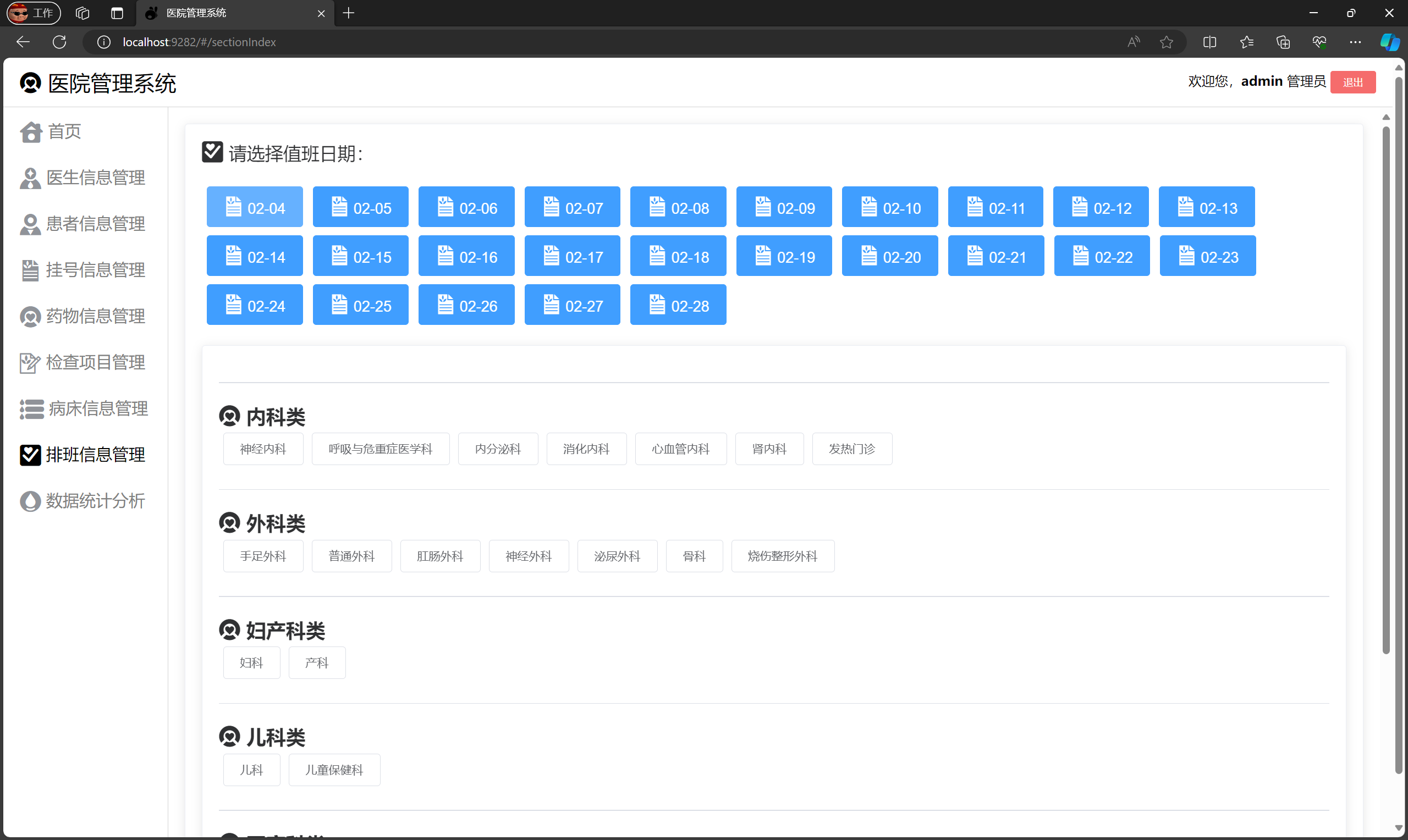排版信息管理:可以按照每个科室来给医生分配排版日期。