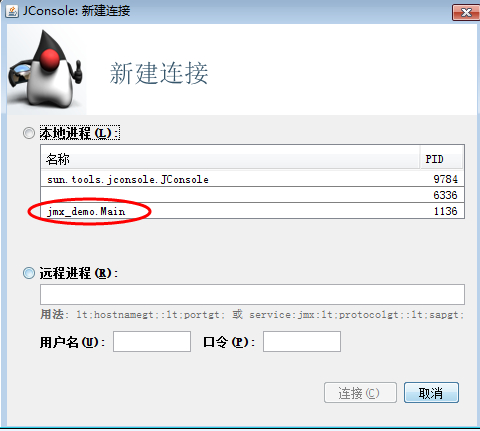 start Jconsloe (location:java\jdk1.7.0_45\bin\jconsole.exe)