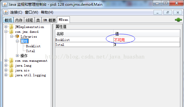 注意:如果在上面的程序中将接口定义为MBean的方式,在MBean实现类中定义bookList属性,会出现如下错误