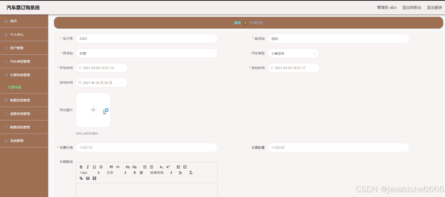JAVA毕设项目汽车票订购系统(java+VUE+Mybatis+Maven+Mysql)