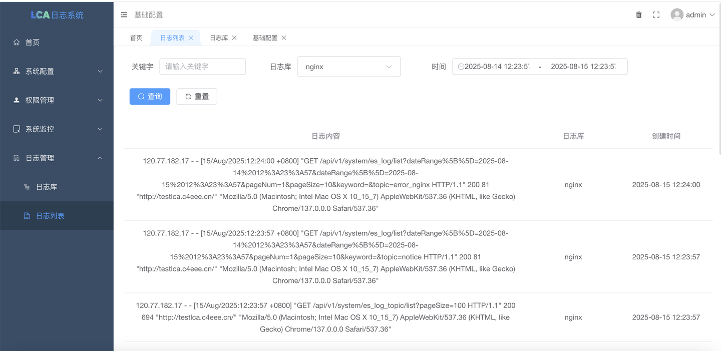 - 可实时收集常用的软件的日志,比如nginx,项目系统,当每次添加一个需要收集的日志文件时可以实时进行收集,还可以实时收集指定目录下所有按时间切分的日志例如:/logs/2024-07-01.log,/admin/lum-2024-07-02.log
