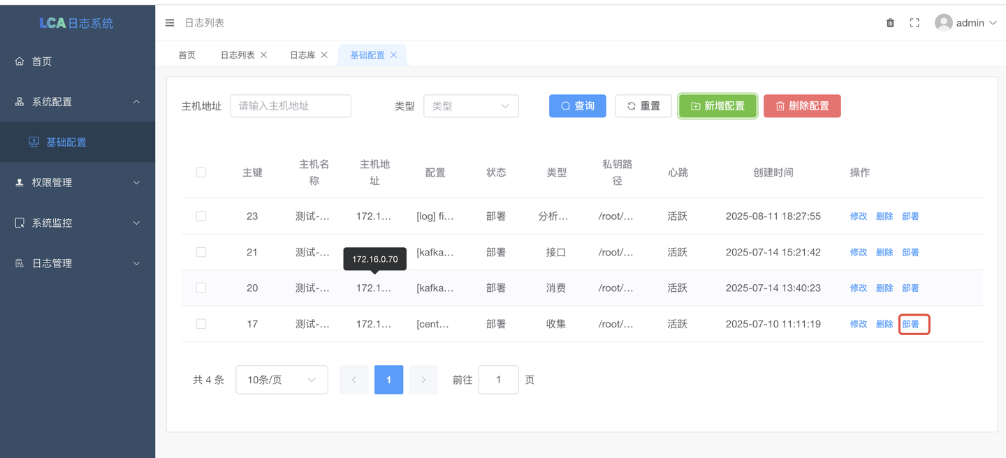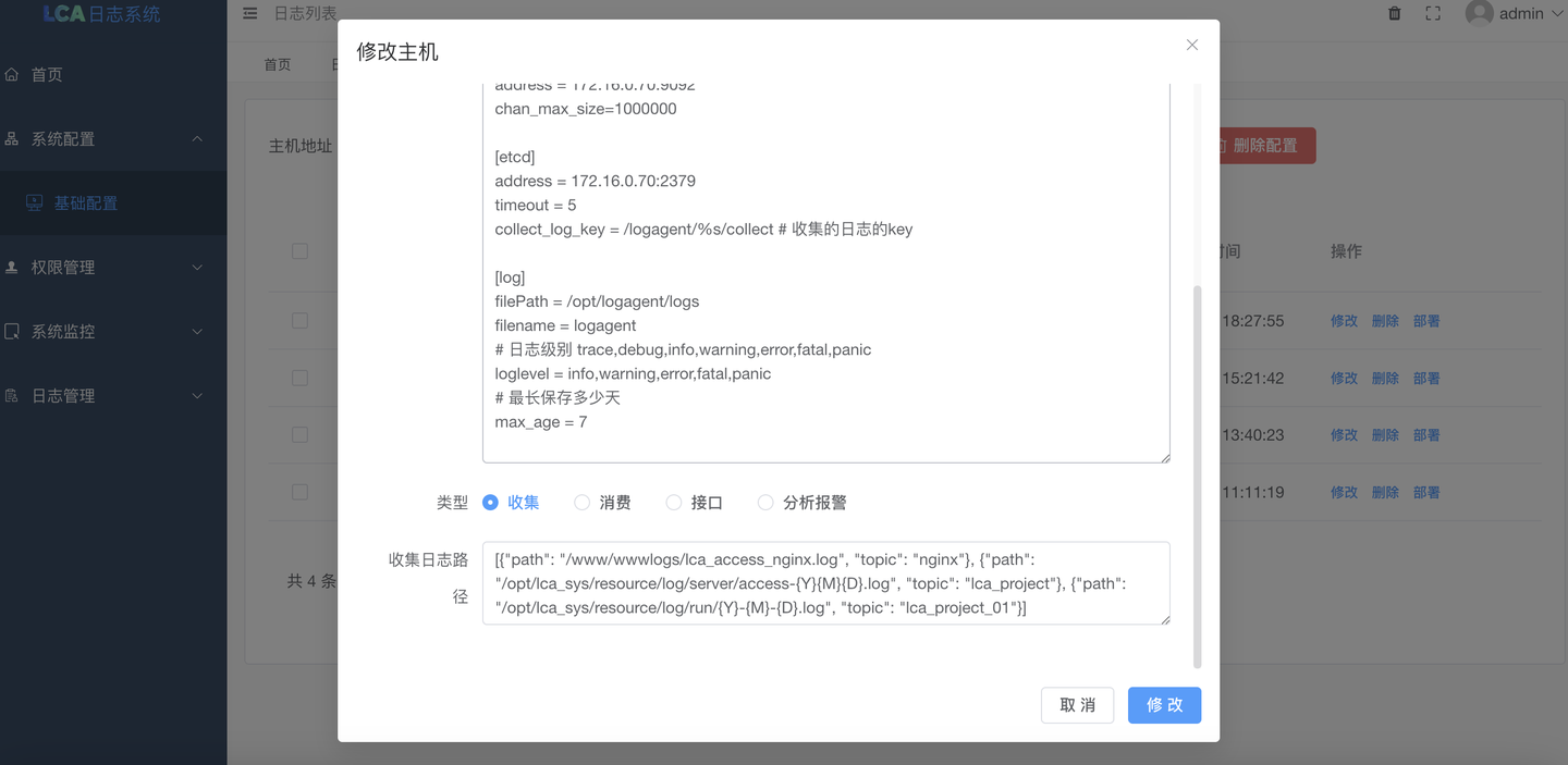 添加好需要收集的日志主机路径后便可部署自动收集日志了