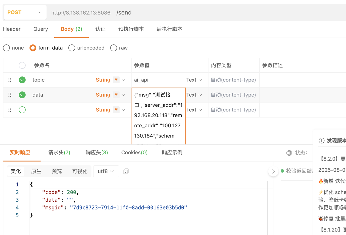 当然我们也提供 api 接口给程序主动调用,我们调用方式非常简单。