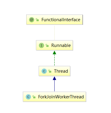 - ForkJoinWorkerThread:Thread的子类,存放于线程池中的工作线程(Worker);