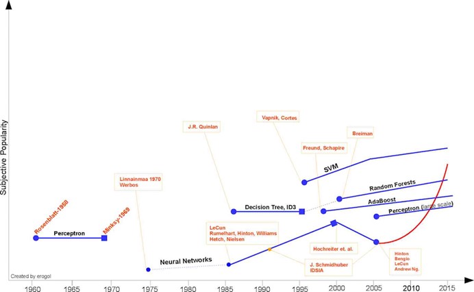 上图是一个关于机器学习算法的时间线来自于Eren Golge。