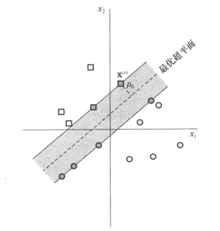 - 灰色的方形点和原形点就是我们所说的支持向量。