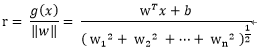 对比点平面的公式,以上的r也就多维度空间向量的到最优超平面的距离。