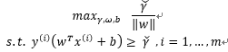 回头看我们前面提到的,给定一个训练集,我们的需求就是尝试找到一个决策边界使得几何间隔最大,回归到问题的本质那就是我们如何找到这个最大的几何间隔? 要想要最大化间隔(margin),正如上面提到的: