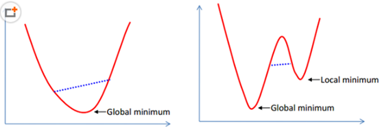 凸函数局部最优就是全局最优,而右边的非凸函数的局部最优就不是全局最优了。