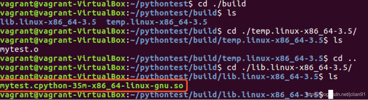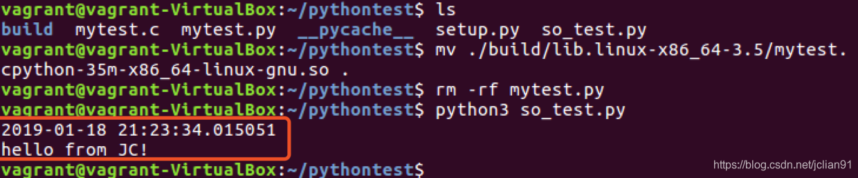切换至pythontest文件夹,先运行so_test.py脚本(为了显示时间,便于跟后面的程序区分),再运行setup.py对mytest.py程序加密,命令如下: