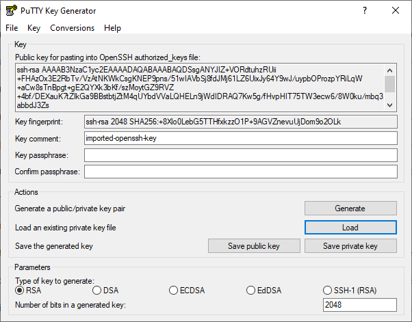 加载 *.pem 文件后,单击“保存私钥”将您的密钥对保存为 *.ppk 文件。